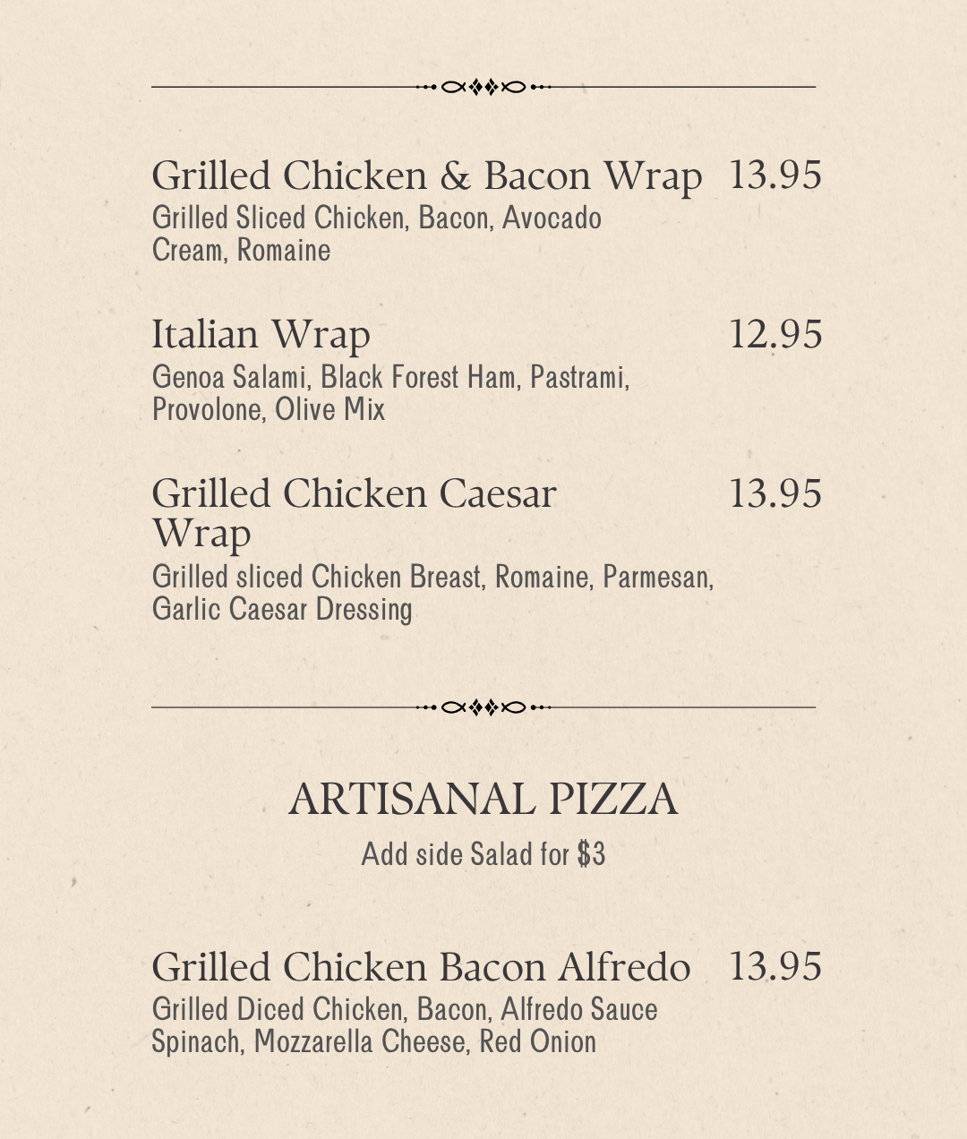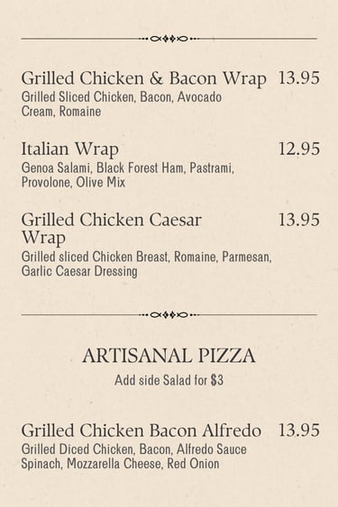 Experience the elegance of Artisan Cuisine, thoughtfully prepared with the finest ingredients and meticulous care.