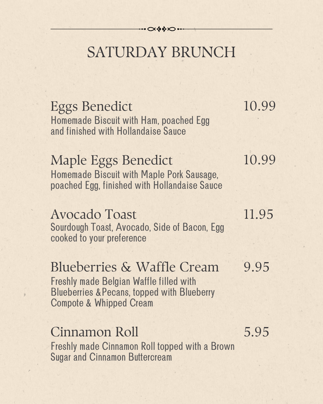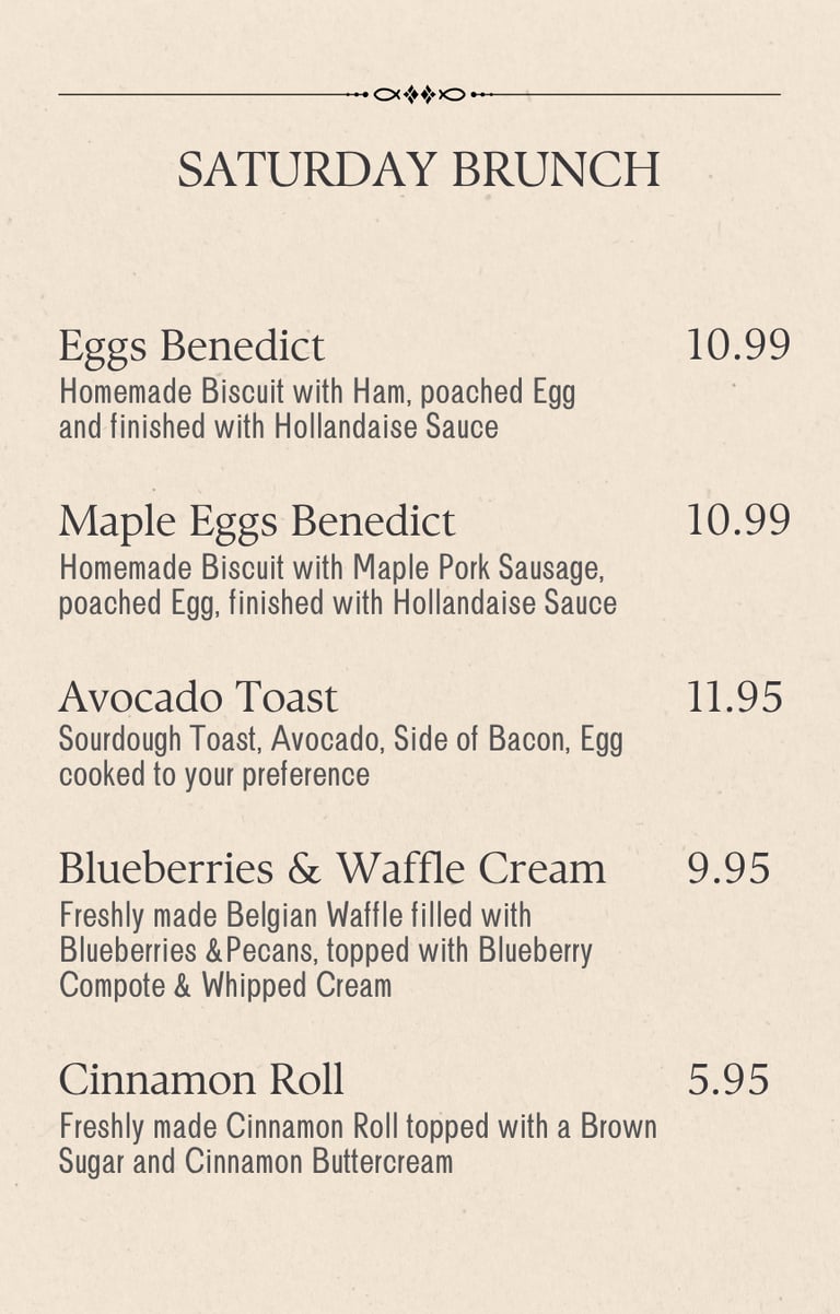 Exclusively on Saturdays, indulge in a refined brunch experience that delights the senses.